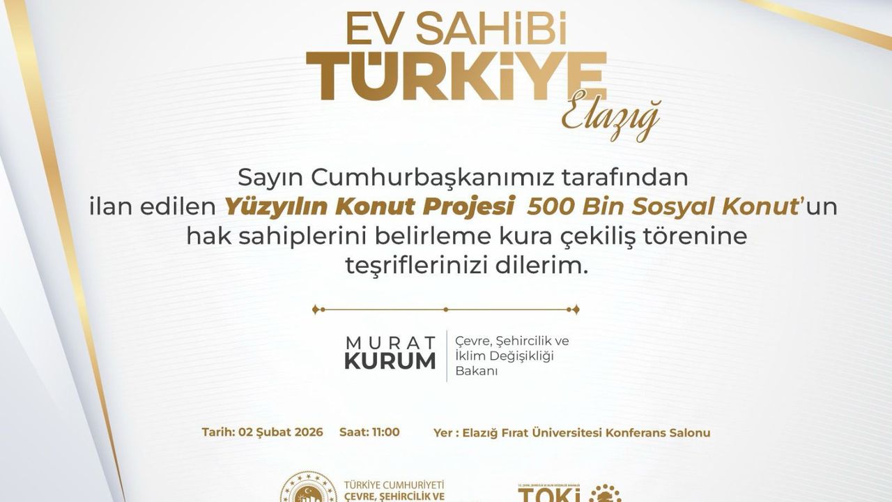 Elazığ Valisi Numan Hatipoğlu, kura çekim töreninin 02 Şubat 2026 Pazartesi günü saat 11.00’de, Fırat Üniversitesi Konferans Salonu’nda yapılacağını açıkladı.