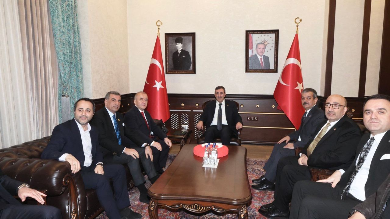Valilik Şeref Defteri’ni imzalayan Cevdet Yılmaz, daha sonra valilik makamına geçti. Cumhurbaşkanı Yardımcısı Cevdet Yılmaz, valilik makamında Elazığ Valisi Hatipoğlu ve il yöneticilerinden Elaz