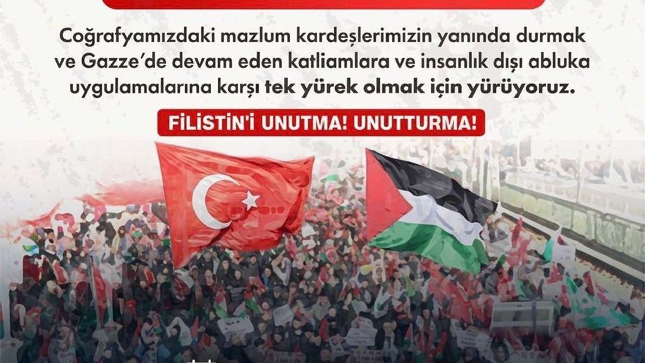 Yürüyüş, 2 Nisan Perşembe günü saat 17.30’da PTT Meydanı’nda başlayacak ve Cumhuriyet Meydanı’nda sona erecek. Etkinlikte katılımcıların tek yürek halinde bir araya gelerek, bölgedeki insani krize karşı ortak bir duruş sergilemesi bekleniyor.