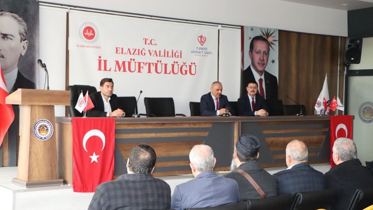 Diyanet İşleri Başkanlığı Başkanlık Vaizi Dr. Hamza Yeşildal, Elazığ’da görev yapan vaizlerle bir araya gelerek istişare toplantısı gerçekleştirdi. İl Müftülüğünde düzenlenen toplantıya İl Müftüsü Yusuf Bingöl’ün yanı sıra İl Müftü Yardımcıları Dr. Mustafa Fırat ve Tayyip Tüz ile il genelinde görev yapan vaizler katıldı. Toplantıda vaizlik hizmetleri, irşat faaliyetleri ve sahada yürütülen çalışmalar ele alındı.