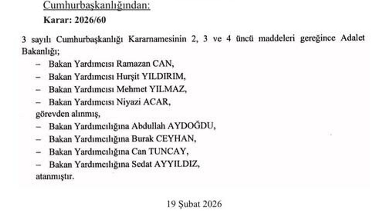 Aynı karar kapsamında Burak Ceyhan, Sedat Ayyıldız ve Can Tuncay da Adalet Bakan Yardımcısı olarak atandı.