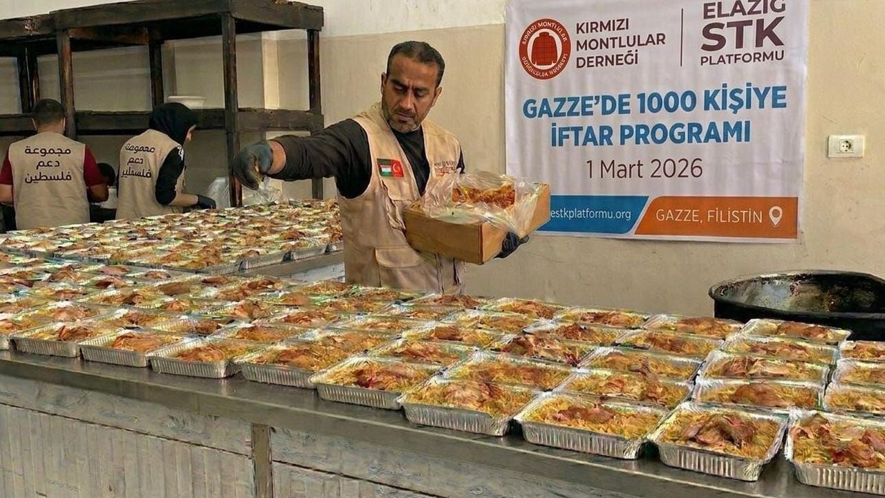 Elazığ merkezli sivil toplum kuruluşları, Ramazan ayında Gazze’ye destek için örnek bir organizasyona imza attı. Kırmızı Montlular Gönüllüleri Derneği ile Elazığ STK Platformu, abluka altındaki Gazze’de 1000 kişilik iftar programı düzenledi.