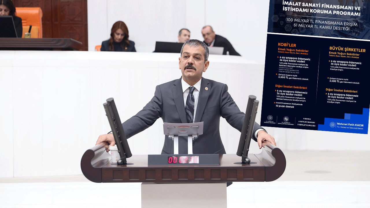 İmalat sanayine yönelik yeni bir finansman programının da devreye alındığını açıklayan Milletvekili Keleş, bankalarla birlikte hazırlanan ve 100 milyar lira büyüklüğe sahip finansman programının imzalandığını belirtti. Program kapsamında KOBİ’ler ve büyük ölçekli firmaların, bir aylık istihdam maliyetleriyle orantılı olarak 50 milyon liraya kadar krediye erişebileceğini kaydeden Keleş, kredilerin 6 ay anapara ödemesiz ve 36 aya kadar vadeli olacağını ifade etti. Yıllık finansman maliyetinin yüzde 33 olarak belirlendiğini, KOBİ’lere kefalet desteği de sunulacağını söyledi.