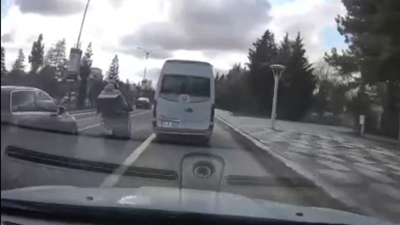 Olay, merkez Zübeyde Hanım Caddesi’nde yaşandı. Edinilen bilgiye göre, plakası ve sürücüsü öğrenilemeyen motosiklet, minibüs ve otomobilin arasından geçerek yürekleri ağza getirdi. Akan trafikte hem kendi canını hem de diğer sürücülerin canını tehlikeye atan sürücünün o anları ise bir aracın kamerasına yansıdı.