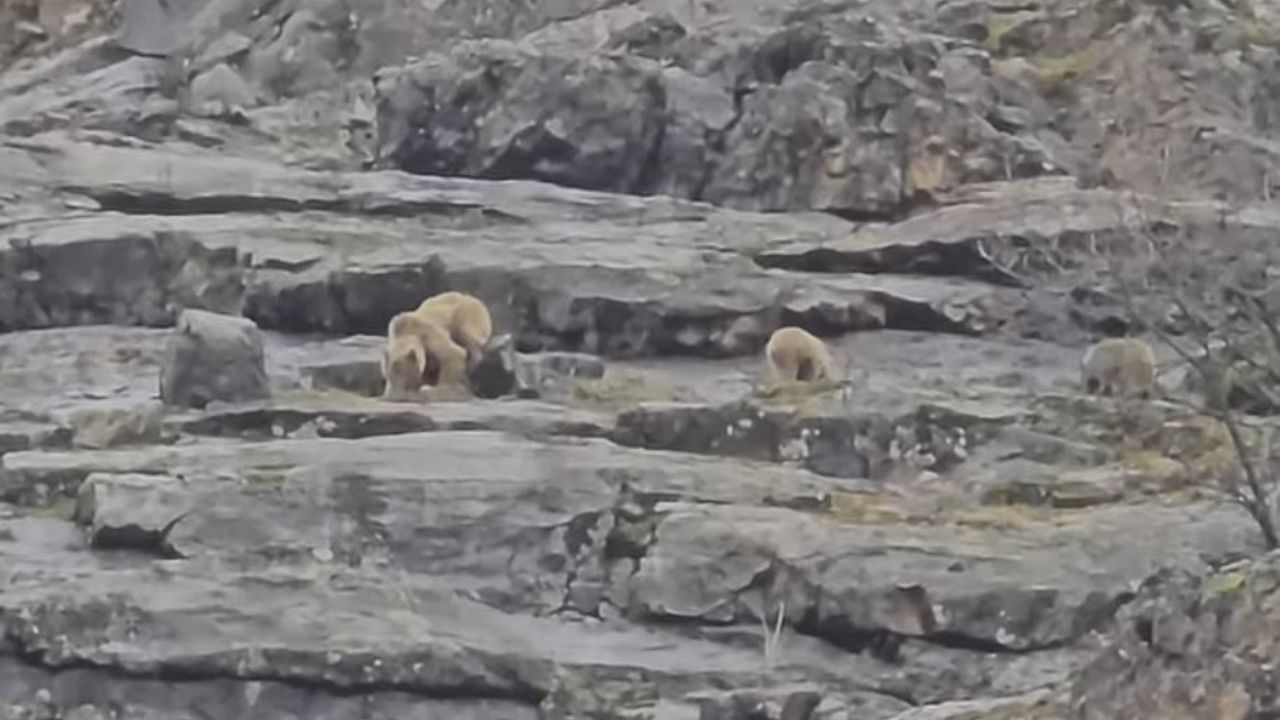Tunceli doğası, vadileri ve yaban hayatı ile dikkat çekiyor. Bu çerçevede Munzur Vadisi'nde gezen Doğa Koruma görevlisi Murat Özel, anne ayı ve yavrularını kayda aldı. Görüntülerde, ayıların yiyecek aradığı ve kısa süre sonra gözden kaybolduğu görüldü.